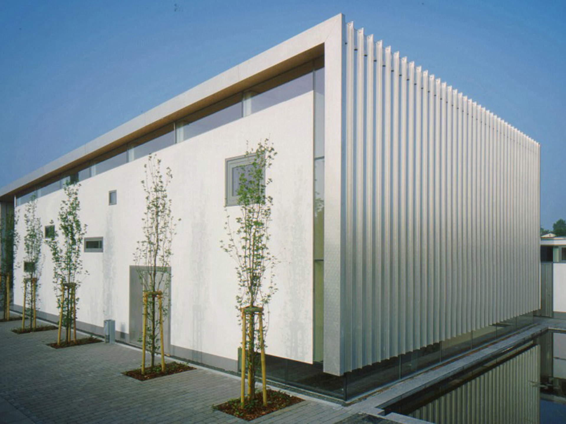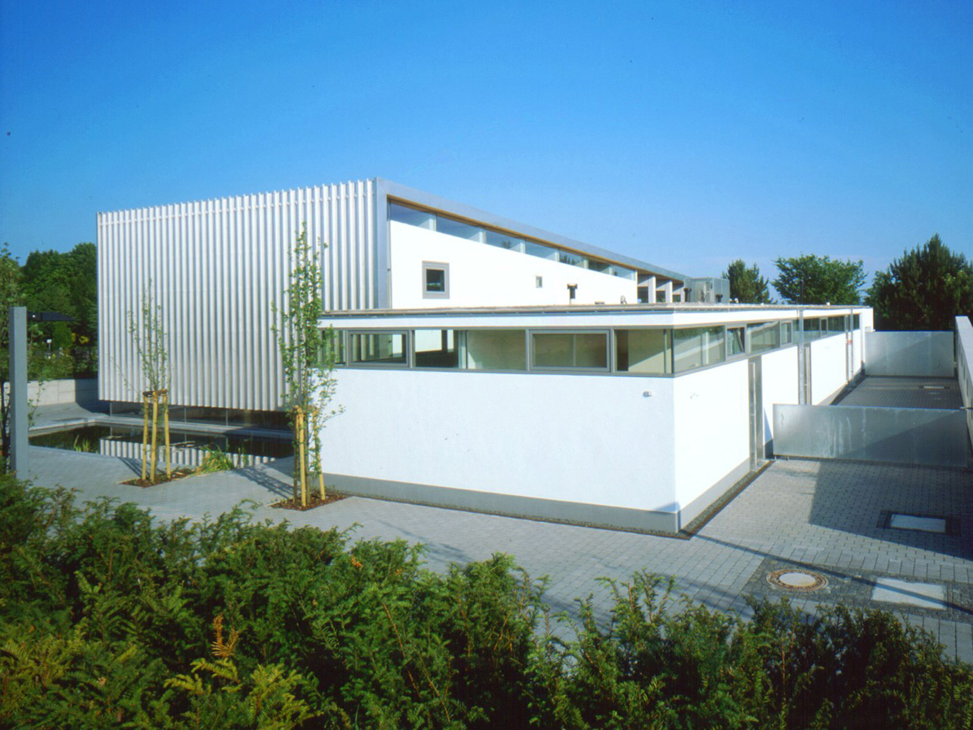 Neubau Trauerhalle für Aussegnungs- und Trauergottesdienste mit Neben- und Funktionsräumen (Lager, Büro, Sanitäranlagen).