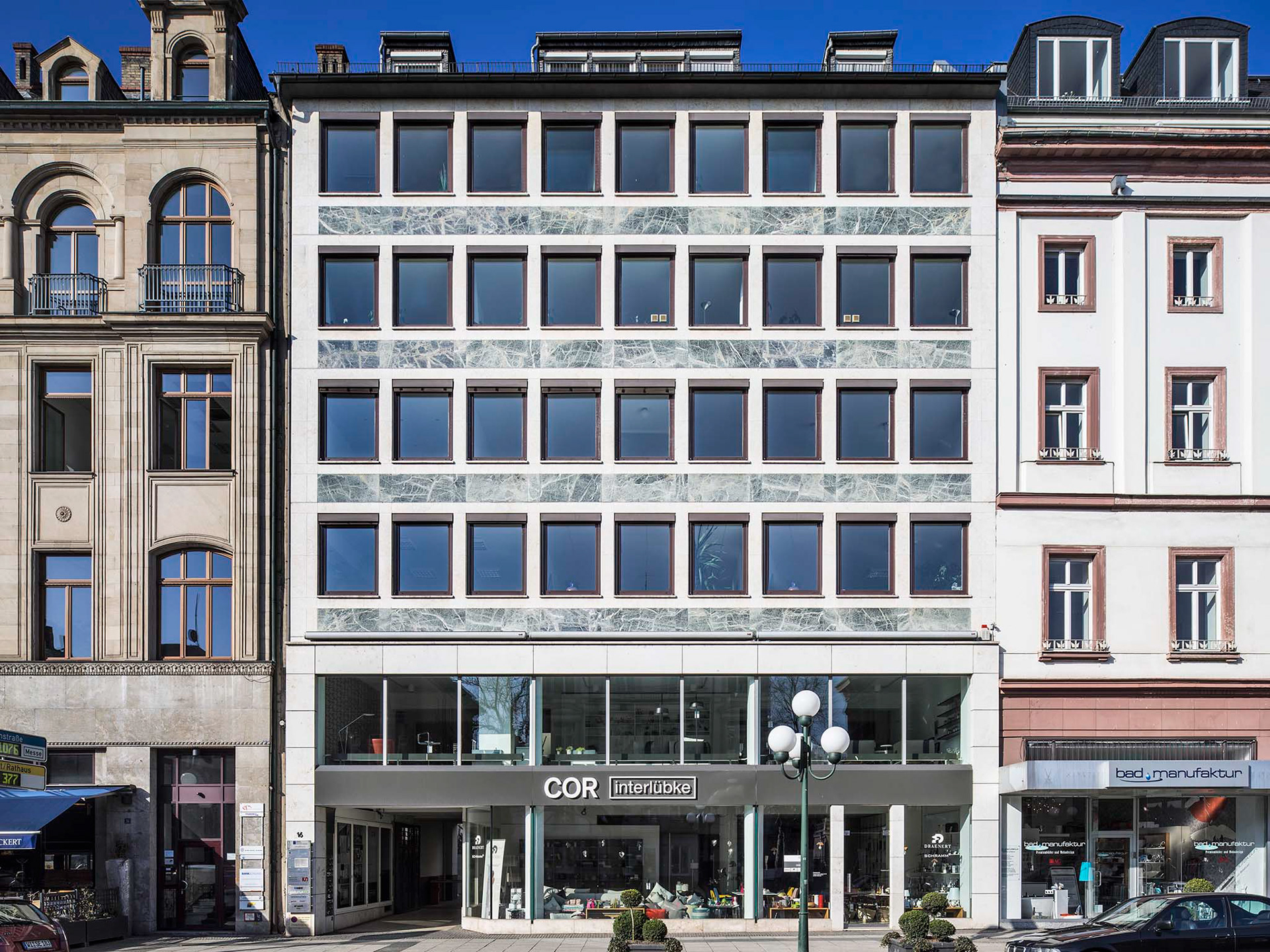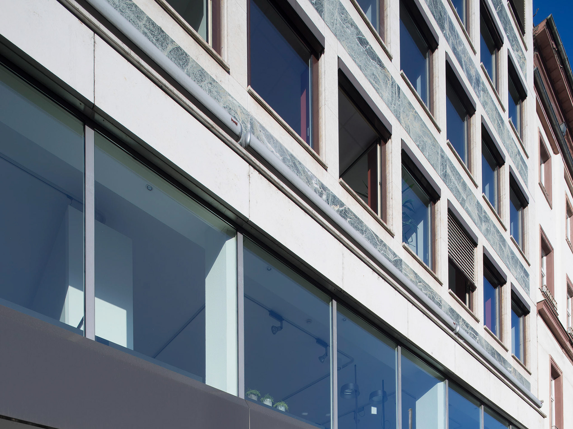 denkmalgerechte Sanierung von zwei Büro-/ Geschäftshäusern mit Büros, Ladenzeile und Nebenräumen.