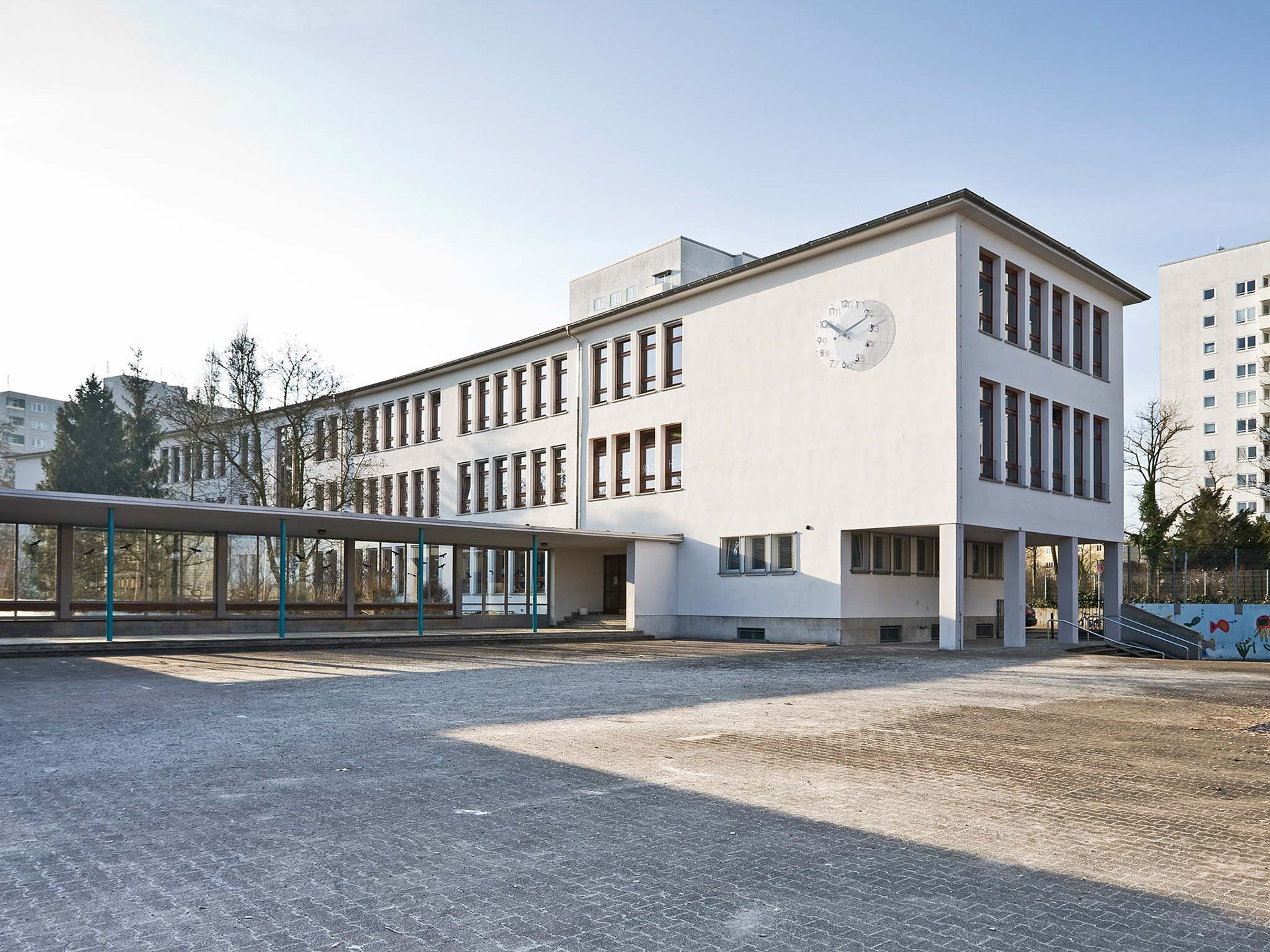 Denkmalgerechte Generalsanierung Grundschule mit Sporthalle, Kita + Wohnungen, Ausführung in Abschnitten bei laufendem Betrieb.